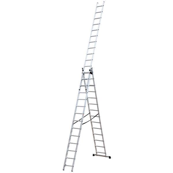 Лестница алюминиевая трехсекционная - это универсальная раздвижная лестница стремянка, состоящая из 3 секций. Верхняя секция съемная и может использоваться отдельно. Лестница алюминиевая трехсекционная универсальная - самая компактная, функциональная и популярная лестница у покупателей. Её можно использовать в виде приставной лестницы (все три секции раздвинуты в прямую линию) - для работ на стенах, столбах и других вертикальных поверхностях. И в виде лестницы-стремянки (перевернутая буква "У") - для потолочных работ, работ в саду и других задач, при выполнении которых лестницу возможно опереть только на горизонтальную поверхность. Лестницы выполнены из алюминиевого сплава, имеющего высокие прочностные характеристики, малый вес и стойкость к коррозии.