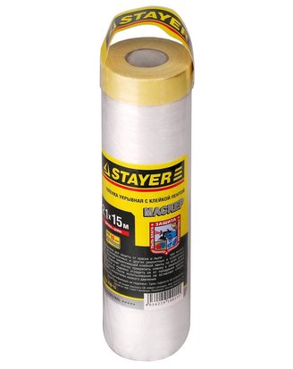 Пленка STAYER обеспечит надежную защиту поверхности от пыли, грязи, влаги и краски при выполнении автопокрасочных и других ремонтных и отделочных работ. Закрепляющая клейкая лента по всей длине полотна позволяет плотно прикрепить пленку к защищаемой поверхности, не оставляя следов после использования. STAYER - качество, проверенное временем. Длина: 15 м. Ширина: 2,1 м. Толщина: 9 мкм. Материал: полиэтилен низкого давления.