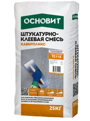 Штукатурно-клеевая смесь Основит Каверпликс ТС115 предназначена для монтажа минераловатных плит, создания армированного базового штукатурного слоя. Рекомендуется для создания «дышащих» систем утепления фасадов как новых, так и старых зданий. Применяется при устройстве системы фасадной теплоизоляции Основит с жестким креплением утеплителя. Для внутренних и наружных работ.