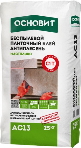Беспылевой плиточный клей Основит Мастпликс АC13 предназначен для облицовки стен и полов керамической и клинкерной плиткой, керамогранитом, натуральным и искусственным камнем весом до 800 г/100 см². Рекомендуется для применения в помещениях с повышенной влажностью. Благодаря беспылевой технологии идеально подходит для плиточных работ при завершенной чистовой отделке. Используется для облицовки балконов, террас, подвалов, отделки фасадов и цоколей без утепления. Для внутренних и наружных работ..