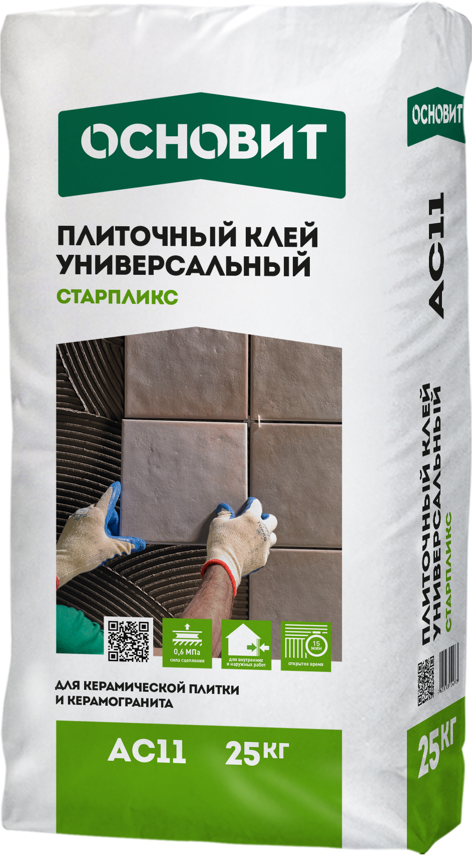 Клей для плитки Основит C1 AC11 универсальный плиточный клей предназначен для облицовки оснований стен и полов с подогревом керамической плиткой, натуральным и искусственным камнем весом до 600 г/100 см².