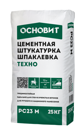 Штукатурка шпаклевка Основит Техно PC23 M предназначена для выравнивания стен из пено- и газобетона, бетона, кирпича. Рекомендуется для отделки фасадов выше цокольной части и помещений с любой степенью влажности. Для внутренних и наружных работ.