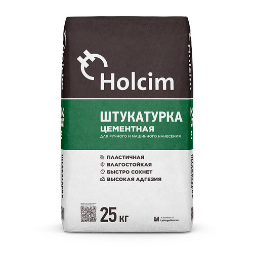 Цементная штукатурка Holcim - это сухая смесь на основе цемента Holcim и тщательно подобранных минеральных наполнителей, специальных заполнителей и модифицирующих добавок. Сухая строительная смесь разработана для штукатурных работ внутри и снаружи помещений. Готовый раствор легко наносится на стену, расправляется правилом и не липнет к инструменту. Применяется для восстановления, выравнивания и оштукатуривания поверхностей, выполненных из материалов на минеральной основе.