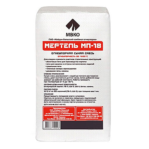 Мертель огнеупорный высокопластичный «Терракот» — профессиональный кладочный состав с высоким содержанием оксида алюминия, обладающий высокой пластичностью и огнеупорностью не ниже 1780°С. Смесь применяется для кладки топок из шамотного кирпича и позволяет выполнять межкирпичный шов толщиной 3-8 мм.