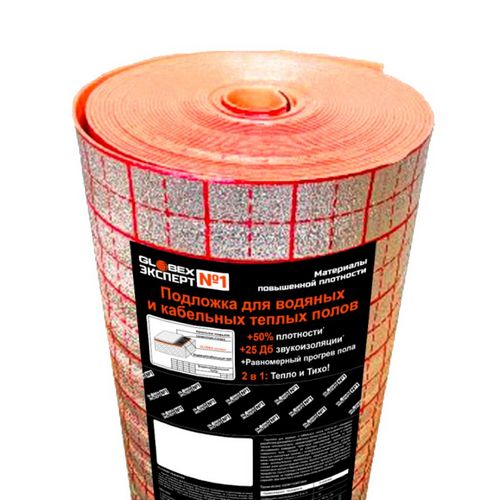 Отражающая подложка выступает эффективным теплоизолятором, направляя тепловые потоки в сторону обогреваемого помещения, равномерно распределяя тепло по всей поверхности пола.