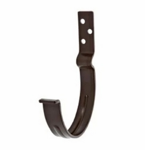Кронштейн желоба служит для крепления желоба, одновременно обеспечивая дополнительную поддержку геометрических параметров желоба. При помощи крюков обеспечивается необходимый уклон для движения воды в желобе в нужном направлении. Крюки крепления желоба цельнометаллические, изготовлены из стали толщиной 4 мм, что обеспечивает им их прочность.